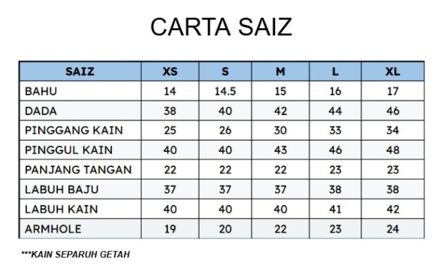 * Strictly NO RETURNABLE & NO EXCHANGEABLE. Minta check betul2 saiz baju sebelum order ye?