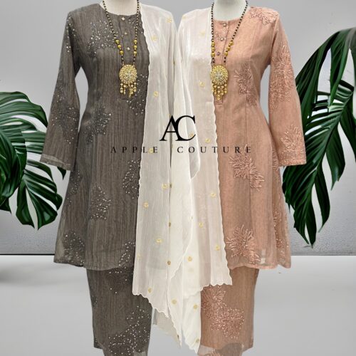 Sulaman benang + labuci (sequin) dijahit kemas pada bahagian depan dan lengan