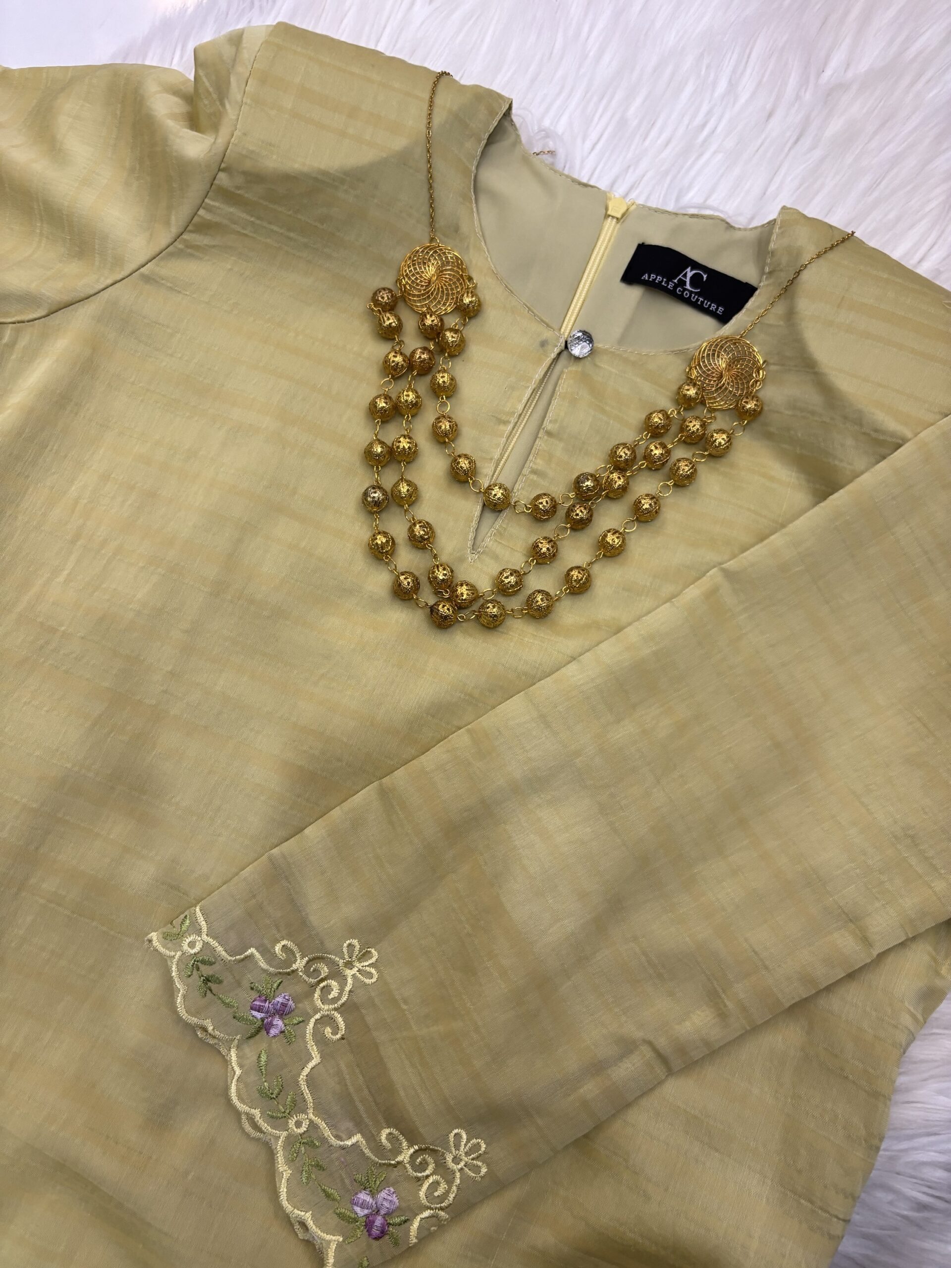 CAMELIA KURUNG MODEN COTTON SILK LIME YELLOW