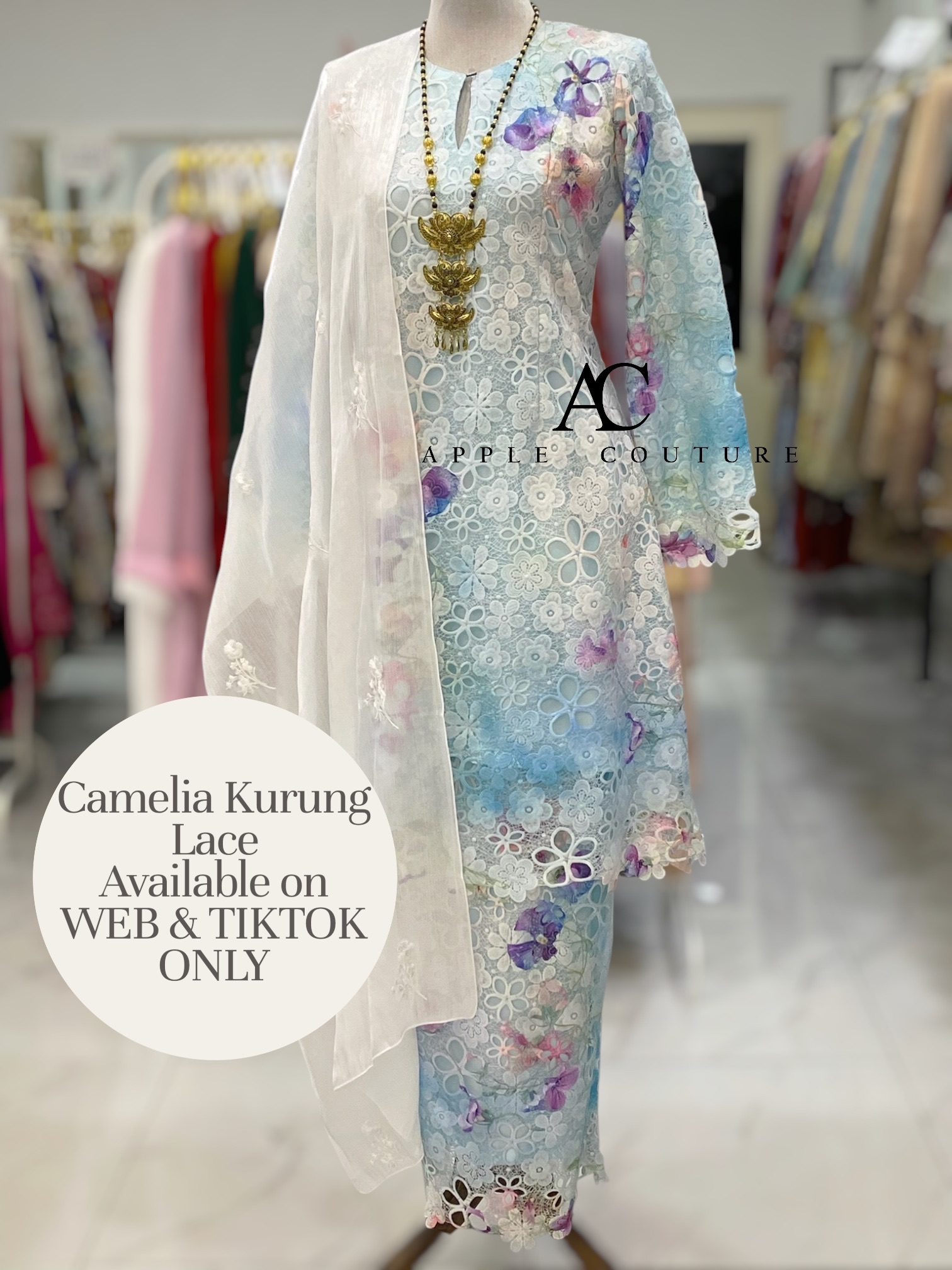 CAMELIA KURUNG MODEN SULAM LACE LIGHT BLUE