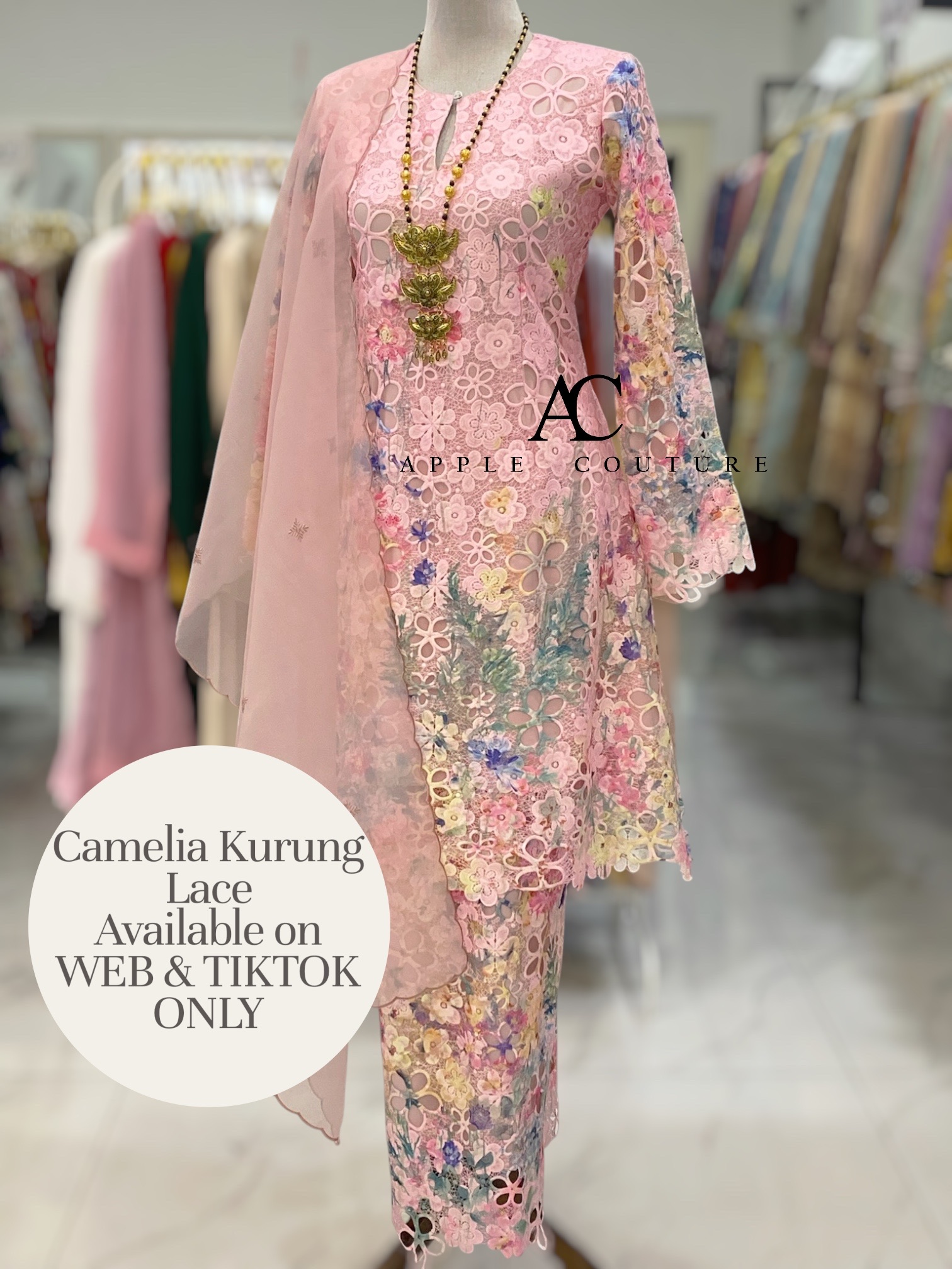 CAMELIA KURUNG MODEN SULAM LACE LIGHT PINK