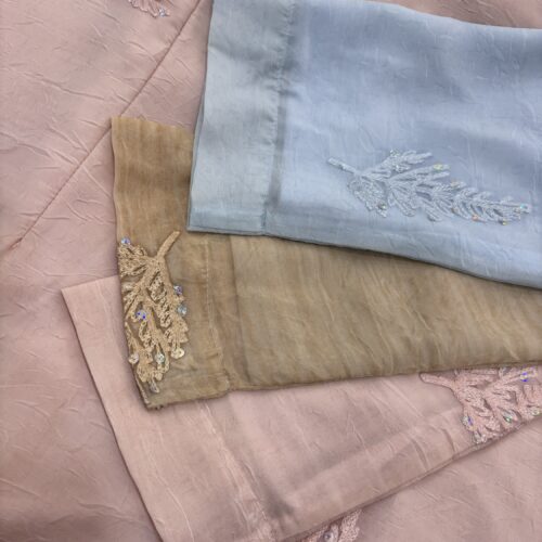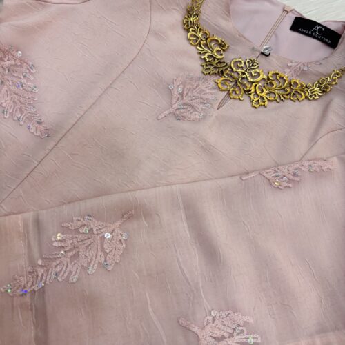 Sulaman benang + labuci (sequin) dijahit kemas pada bahagian depan dan lengan