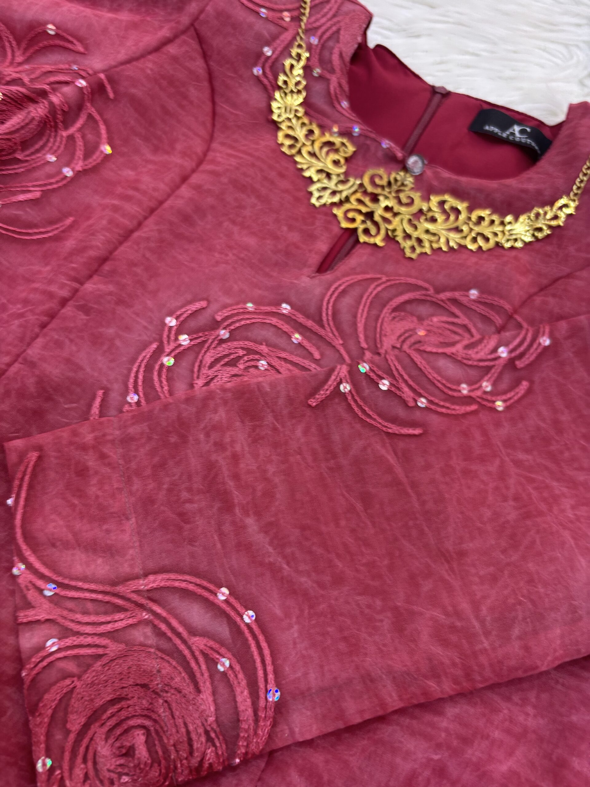 CAMELIA KURUNG MODERN SILK BLEND EMBROIDERY ROSE BERRY