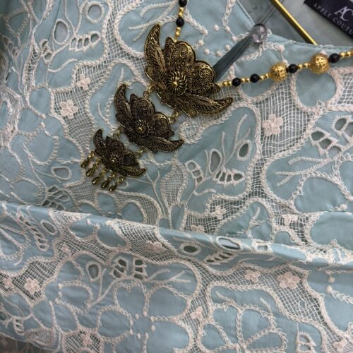 • Corak floral yang jelas dengan benang embroidery tebal.