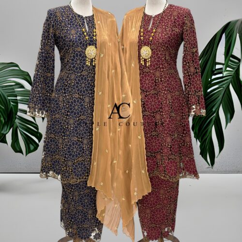 CAMELIA KURUNG PREMIUM LACE EMBROIDERY BLUE BLACK