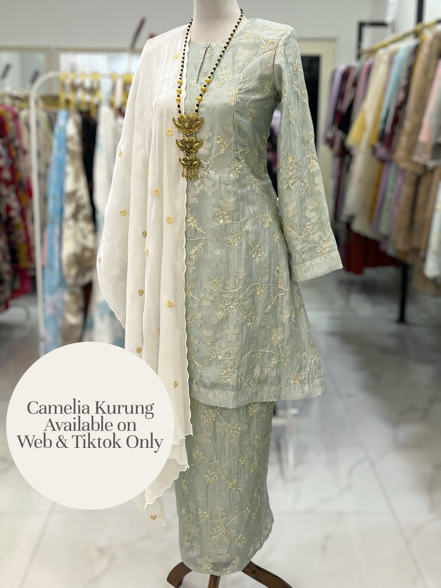 CAMELIA KURUNG PREMIUM SOFT JAQUARD WITH SEQUINS MINT