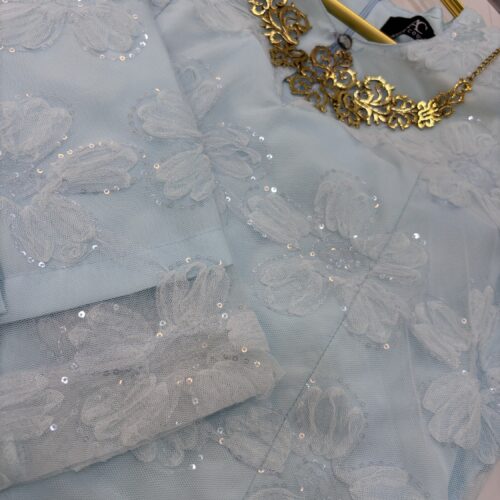 - Taburan sequin halus di keliling bunga untuk memberi kilauan lembut