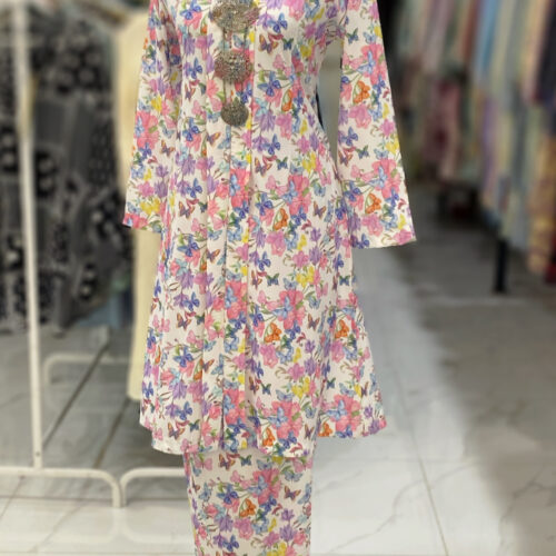 – Potongan kebaya tiada pesak. kembang dari pinggang ke bawah