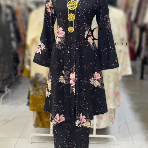 – Potongan kebaya tiada pesak. kembang dari pinggang ke bawah