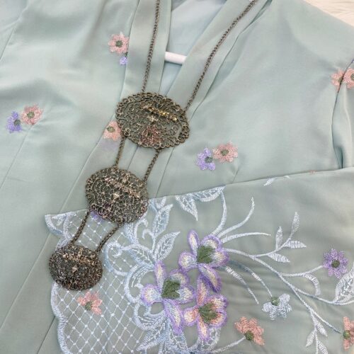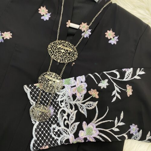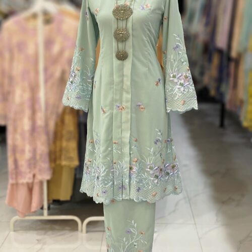 – Potongan kebaya tiada pesak. kembang dari pinggang ke bawah