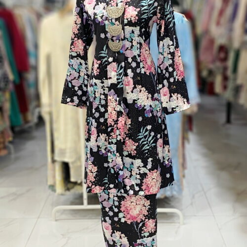 – Potongan kebaya tiada pesak. kembang dari pinggang ke bawah