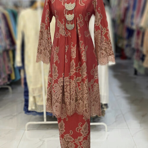 – Potongan kebaya tiada pesak. kembang dari pinggang ke bawah