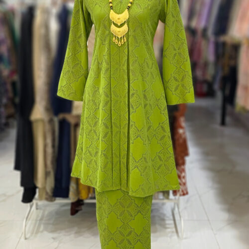 – Potongan kebaya tiada pesak. kembang dari pinggang ke bawah