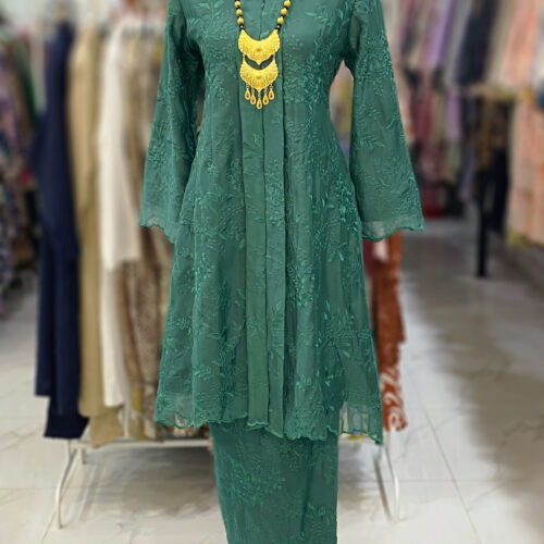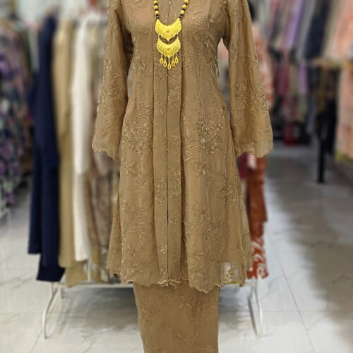 – Potongan kebaya tiada pesak. kembang dari pinggang ke bawah