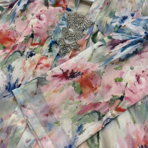 KEBAYA LABUH INANG PRINTED ORGANZA PINK BLUE