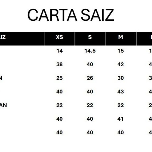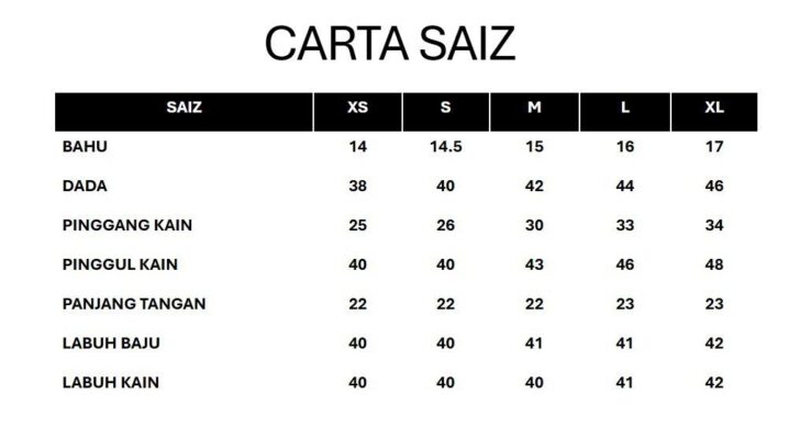 Cadangan, sila rujuk carta saiz.