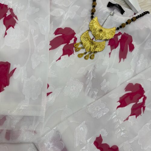 MELOR KURUNG RIAU EMBOSS CHIFFON WHITE PINK